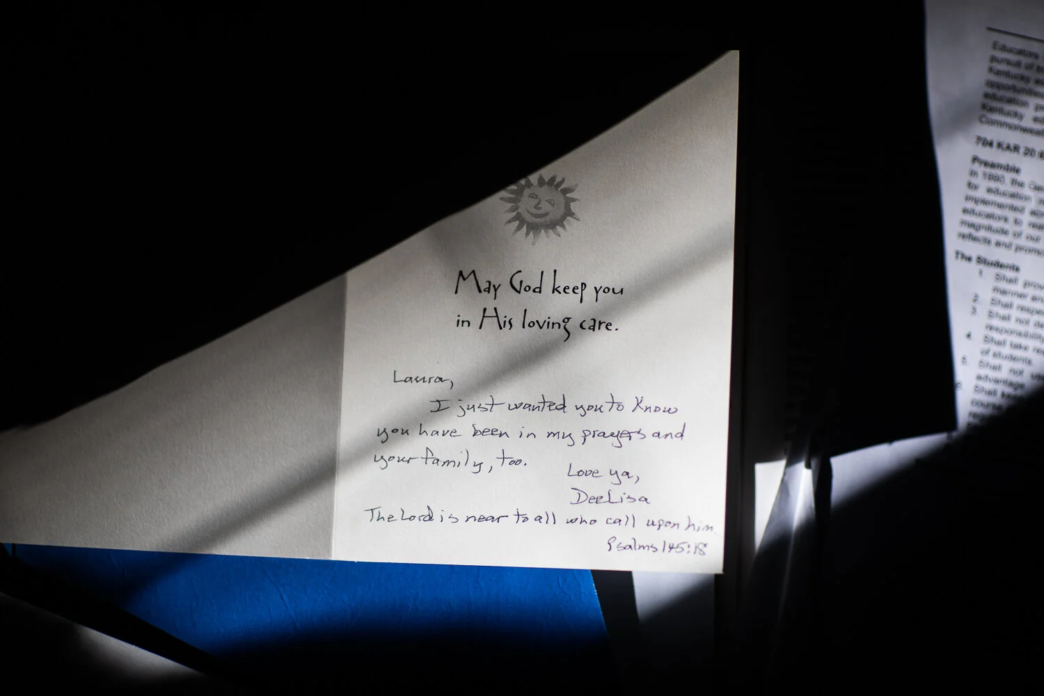 Cards in the folder from the handful of people in the community who reached out with support during that time